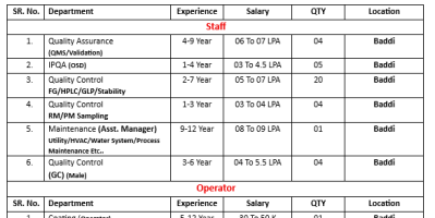 Latest Pharma Jobs in Baddi Himachal Pradesh | Katiyar Job Placement